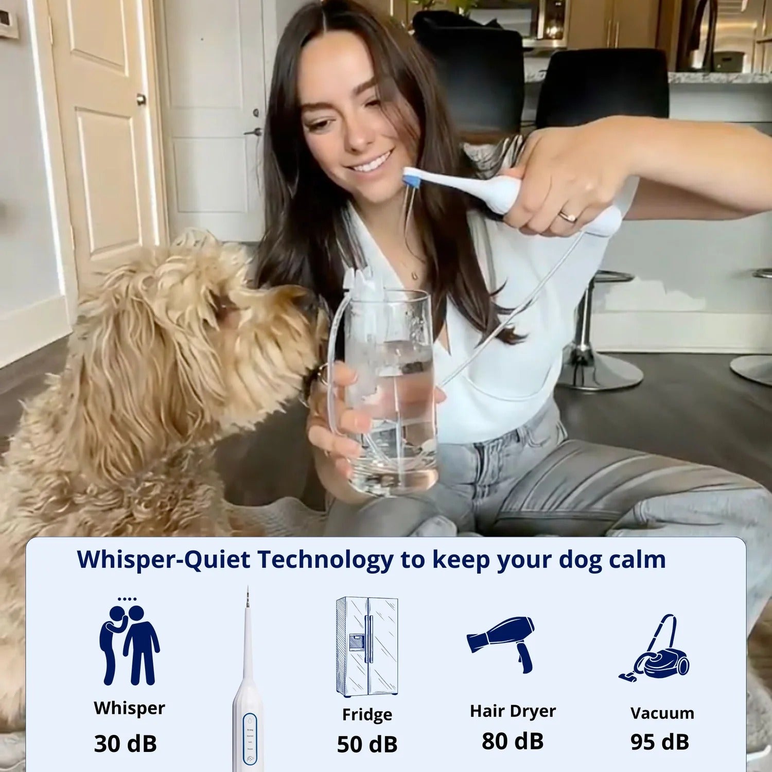 Absolutely. Our Dental Kit was specially designed for all dog breeds and sizes- from tiny toy breeds to large dogs. The cleaning head is one of the smallest on the market, engineered specifically to fit dogs’ smaller mouths and delicate teeth. With adjustable intensity modes and a precision tip, it’s gentle enough for cats and small dogs, yet powerful on tough tartar.